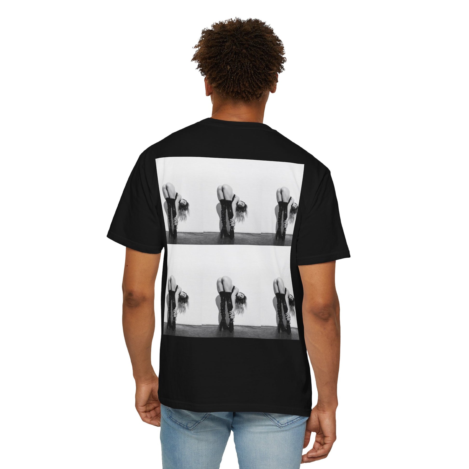 This soft, garment-dyed tee carries a bold, black-and-white photographic print that feels like a stolen moment from an underground studio session. The heavyweight cotton and relaxed fit give it a lived-in, comfortable presence — the kind of shirt you reach for when you want to move through the day with quiet confidence. The image’s intimate, edgy aesthetic pairs naturally with denim, vintage jackets, and high-top boots, making it a wearable statement for nights out, gallery openings, or any day you want to stand out without shouting. The muted, worn-in color and sewn-in label add to the authentic, vintage-inspired vibe that ages beautifully with every wash.